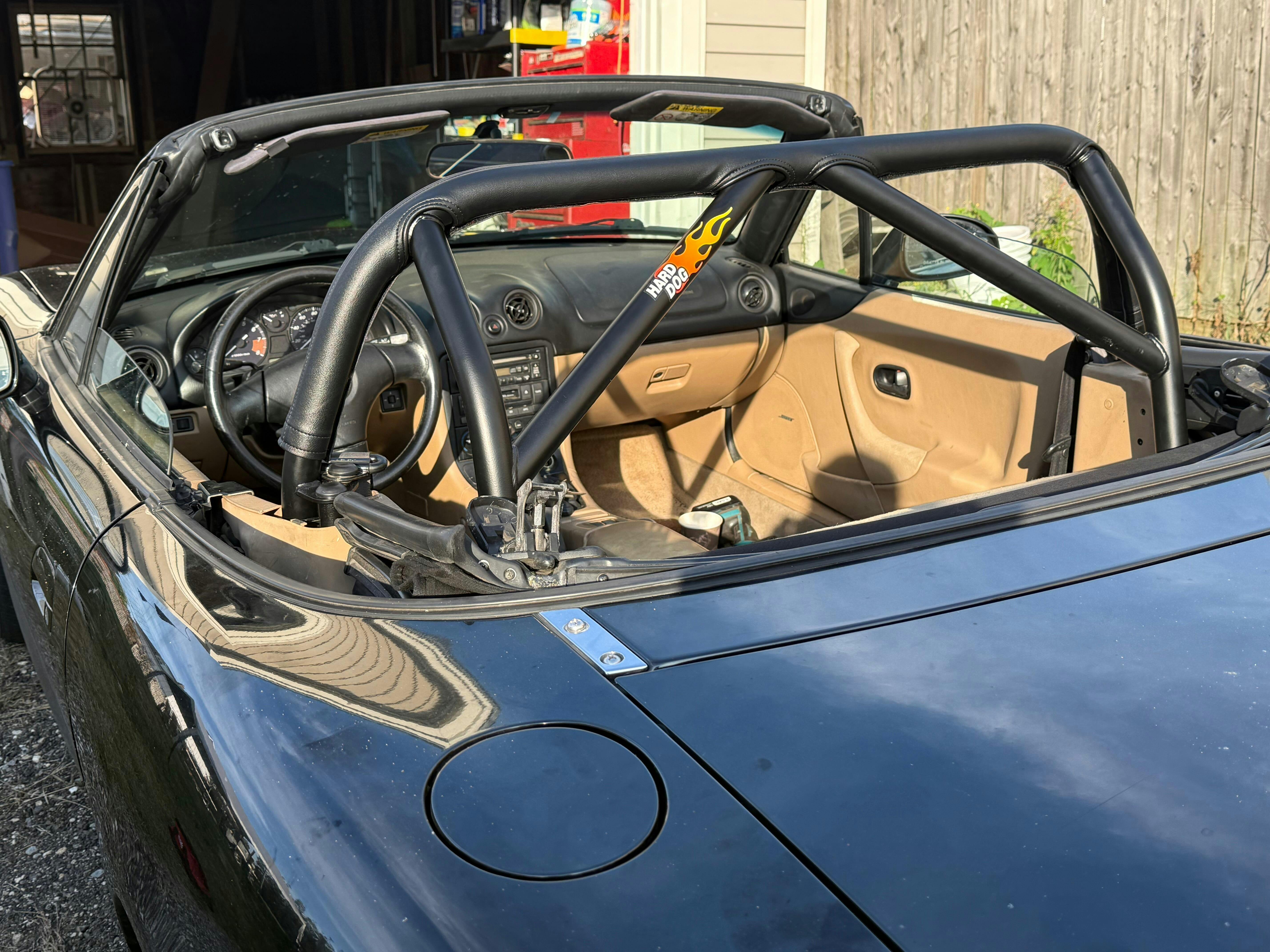 Originally known as the "M2", this is our favorite street bar for the 1990-05 cars. It works with all factory tops - hard and soft, glass or plastic window. It doesn't affect seat travel. The bar is well placed to stay clear of your head while still providing protection. Made of 1.5" DOM tubing.