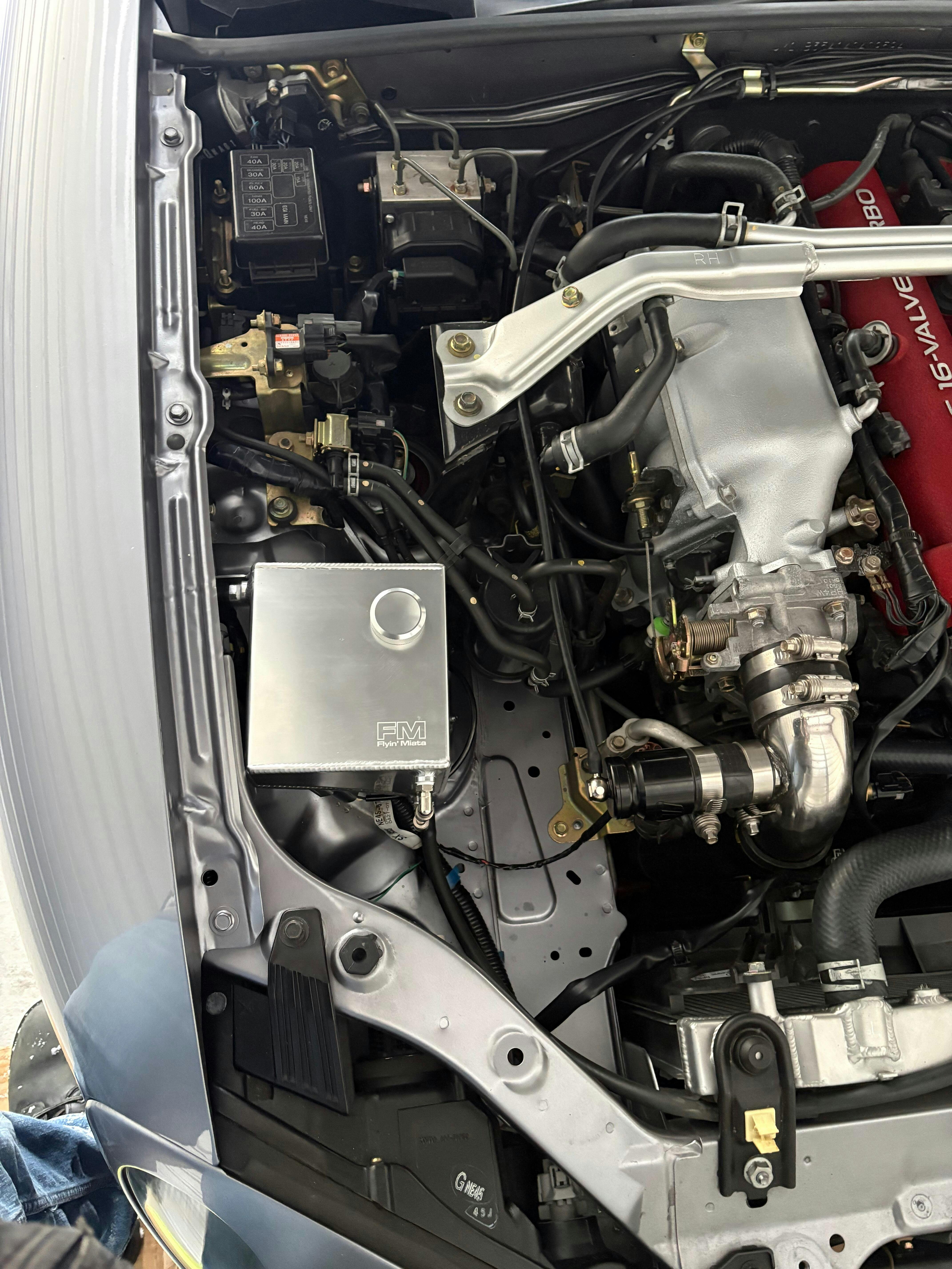 Needed a new coolant tank, I saw this from Flyin Miata I thought it looked good, so I decided to purchase it, nice little upgrade, I also bought the windshield washer location but I haven’t installed it yet