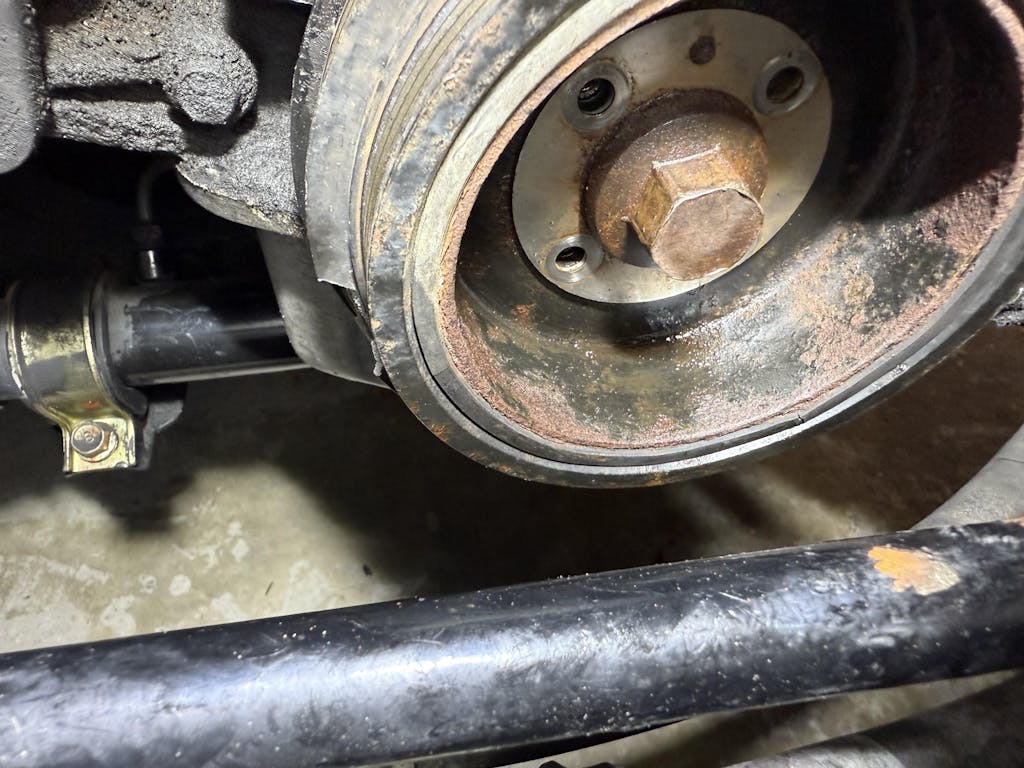 For years, I have used a large pipe wrench to hold the damper to tighten it down after belt changes.