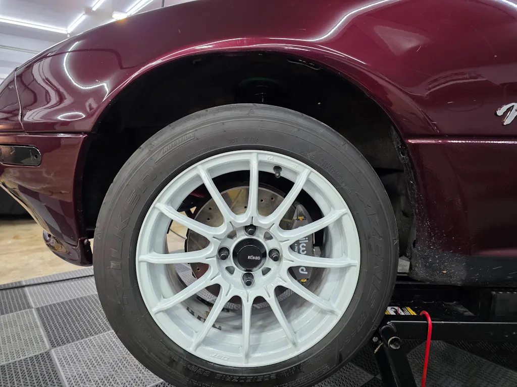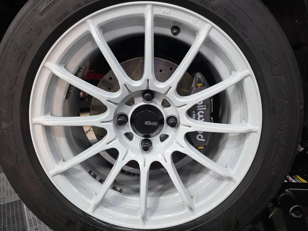 Awesome kit! Very easy to put together just make sure you mount the caliper brackets correctly with the flyin miata logo towards the inside of the car. Mike is the man and was able to help me out when I was having issues with my brackets being on the wrong way, Was able to clear my wheels Konig Dial in 15x7 +35 with no problems