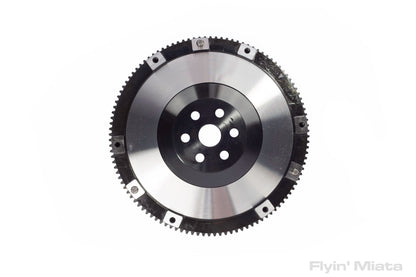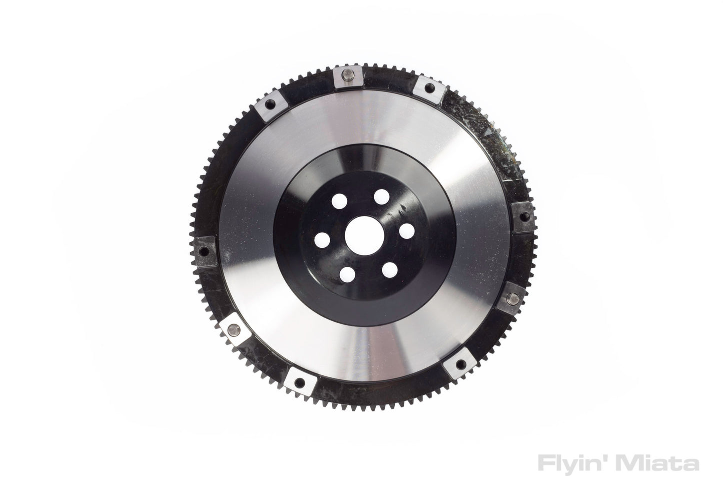 Weighs 12.4 lbs to give a good balance between civility and response. Made of steel with an integral ring gear. Fits NC models with either 5- and 6-speed transmissions. The flywheel may cause some harmless drivetrain noise on closed-throttle deceleration - this is a characteristic of lightweight flywheels.