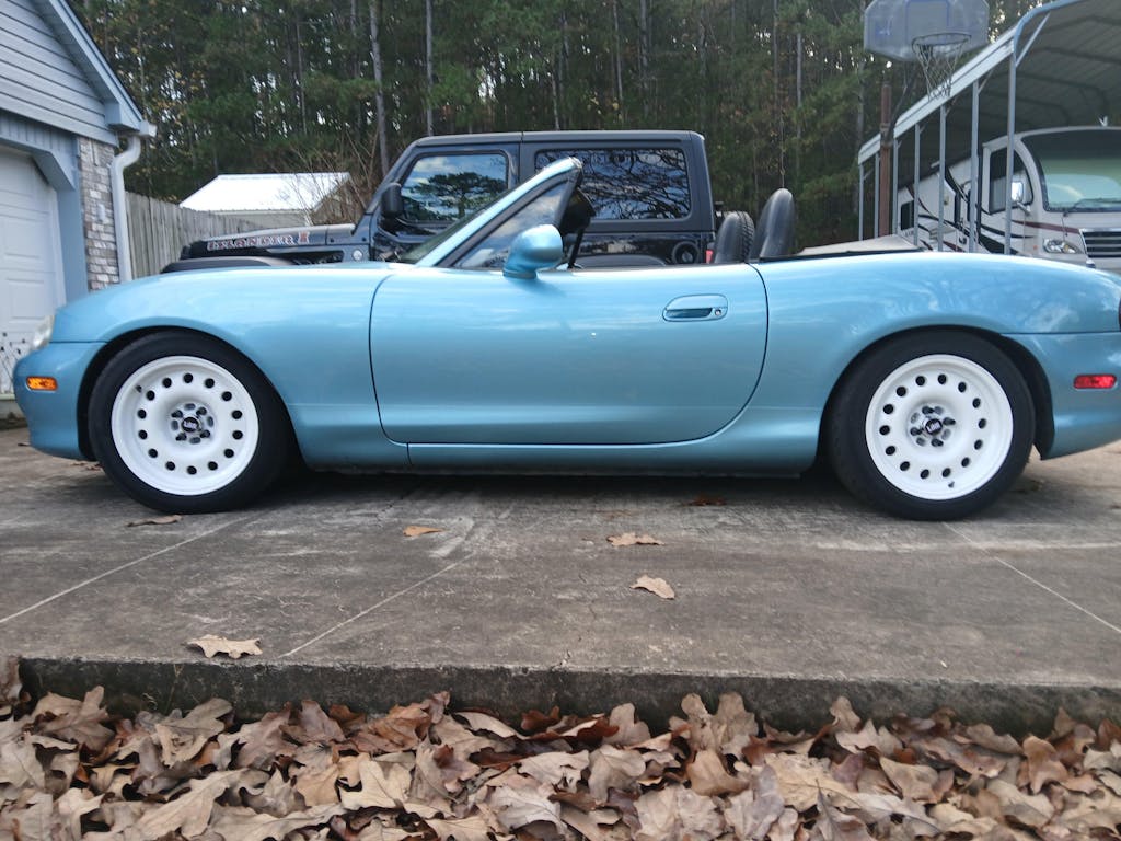 I just purchased these a few weeks back for my 99 NB Miata. My wife actually picked these out and she is not even into cars, just likes going for a drive and get some ice cream. I put on 205/50 tires and did a test fit this evening. I am on Flyin Miata Lowering Springs and still have tons of clearance for the tires. I texted a bunch of people afterwards and they all love the look. If you are trying to find something different that no one else is running these are it. I love the vintage racing wheel look. I will be looking forward to seeing what Flyin Miata does with these in the future. I was going to wait to write a review when I got better photos but I had to spread word out on these. If you are thinking about it just make the jump, you will be very happy you did. Flyin Miata if you read this, I think there is an untouched market with these. Maybe a 15x8 and 15x7 with a 30-35 offset for those with NAs and those that want a more conservatice fitment., but the 25 offset with 205s fit the NB perfectly with your lowering springs. I also have to give a shout out to your customer service team. I just about grilled them with questions and geeked out talking about wheel specs and they were all about it.
