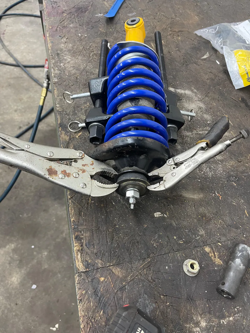 Getting the nut and lock washer on was an absolute nightmare. I got lucky on the first one, my wife helped with the second and then she said “can’t you clamp this somehow?” So, this isn’t probably “correct” but it works great. Refer to the photo. I had enough room to start the nut without the washer. The issue was the bushing needed smashed down more than we could do by hand. So I ran the nut down without the washer to smash the bushing, clamped with vise grips, then removed the nut, added the lock washer, and then tightened back down.