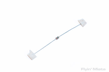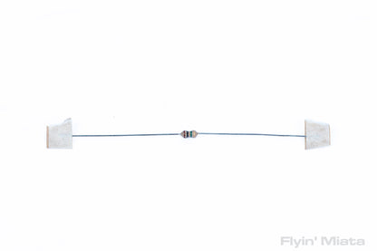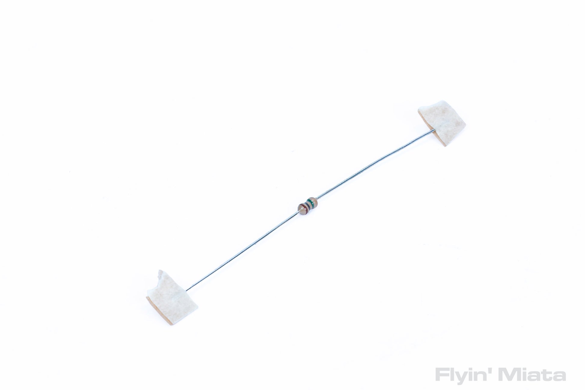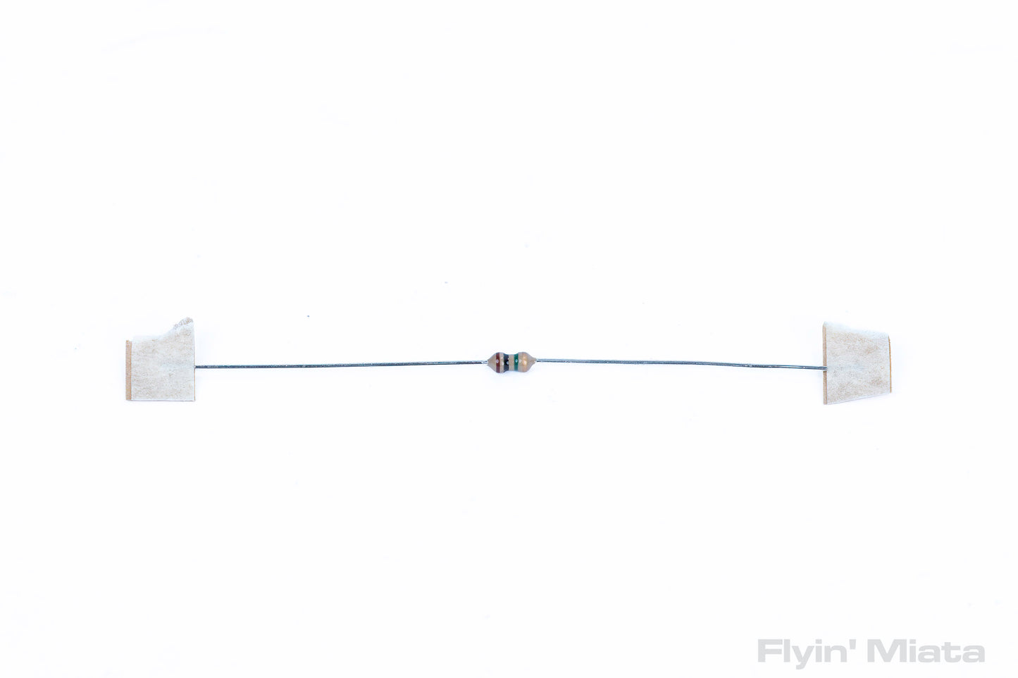 If you want to prevent "hyperflash" with LED turn signal bulbs on your NA, you can modify your stock flasher unit with a through-hole 1MΩ (1 MOhm) resistor. It doesn't need any sort of unusual specification, but just in case you don't have one in your stash this is it.