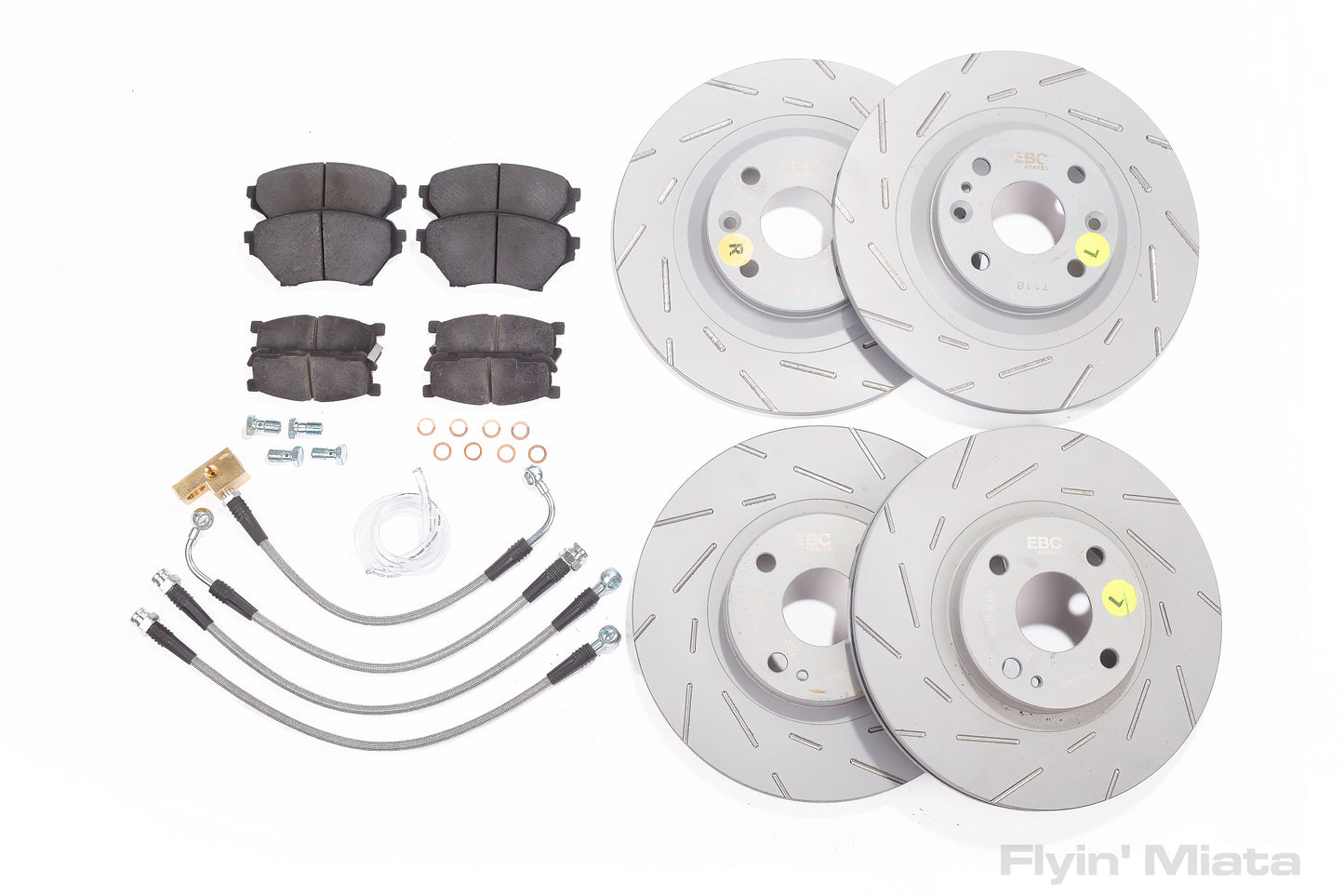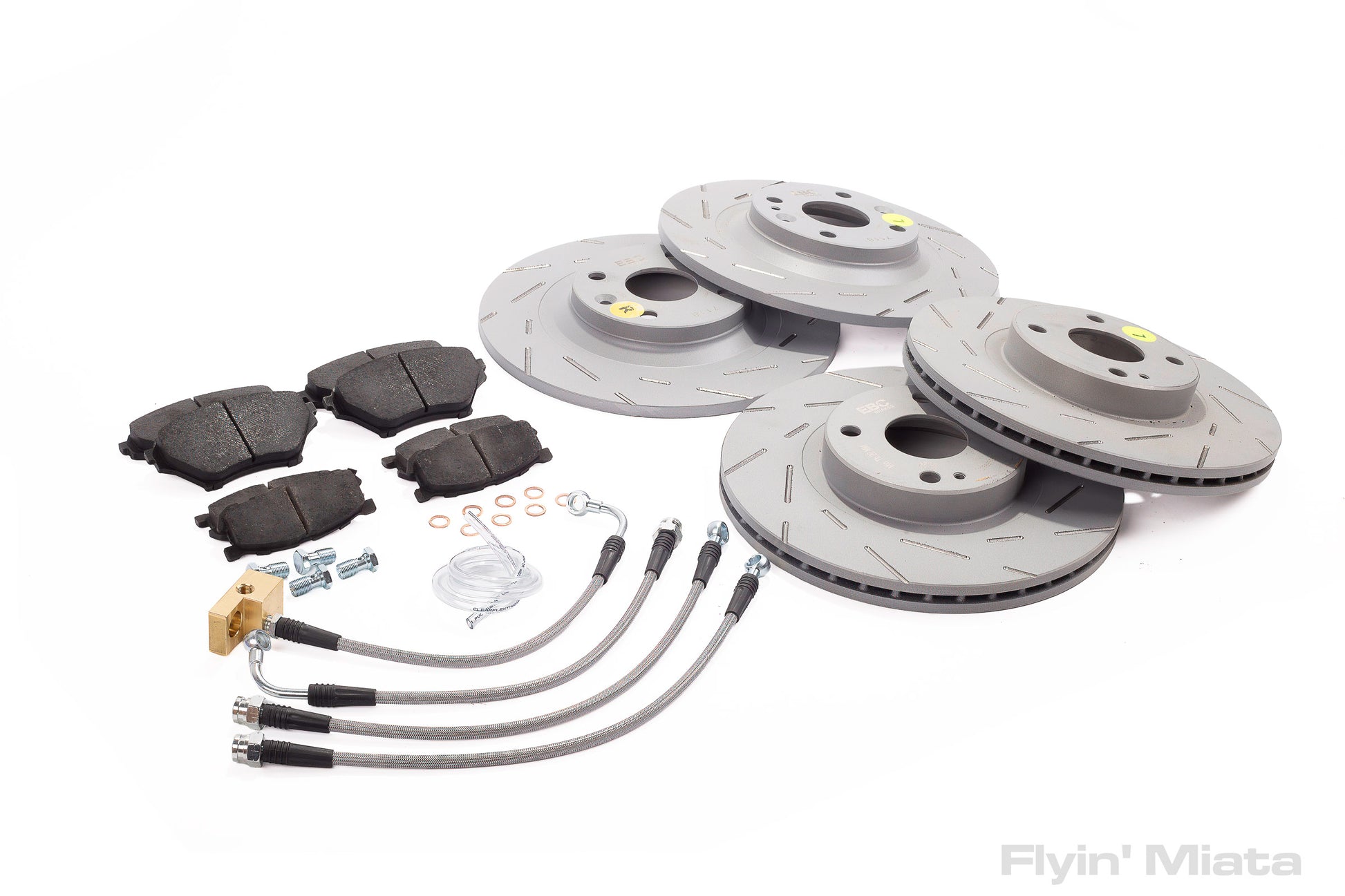 A good-looking, effective brake upgrade for Miatas with the Sport brake package. This is basically a refresh of the stock braking system, updating all the wear parts to new, high-quality replacements. Direct replacement for stock parts, fits all Miata stock wheels.