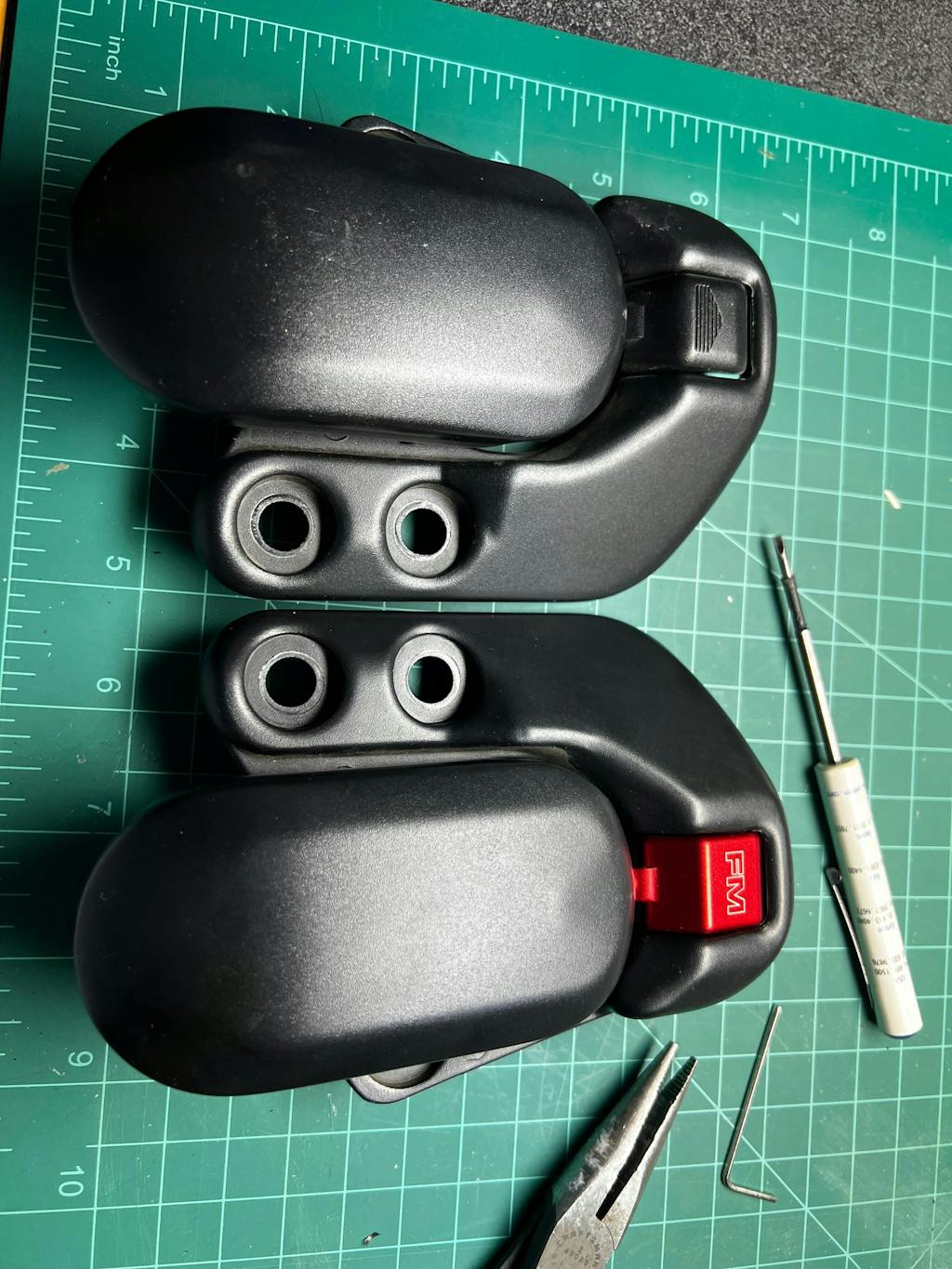 The video provided to install these is great, only problem is I had significant difficulty getting the latch to line up. Finally got it in, and realized the latch lock was frozen, and it was impossible to press, even when the spring and pin was properly installed. Took it apart again to find the issue, and when compared to the locks I took off, the latch locks I received are significantly wider and marginally longer and dont fit. They can not move/rotate inside the cutout in the latch itself. I had to take a steel file and remove material from the latch to make it work. I noticed someone else also had the same issue in another review, so someone at FM may need to start double checking their CNC machine's settings before producing more of these.