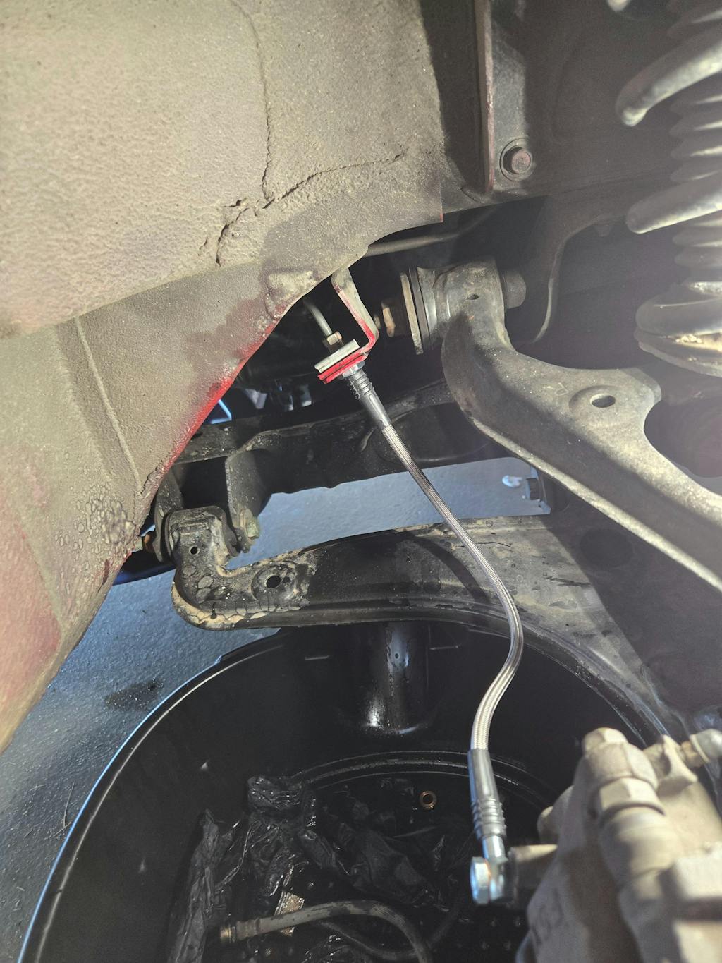 For maximum braking response! These teflon lines are wrapped in stainless steel so they cannot expand under pressure. This makes sure all of your hydraulic pressure gets to the brakes, meaning more braking power and more accurate pedal modulation. There's a clear sheath over the lines to protect the stainless braid. DOT-approved stainless steel lines complete with junction block and all hardware. Add our master cylinder brace if you want the ultimate in a stiff pedal!