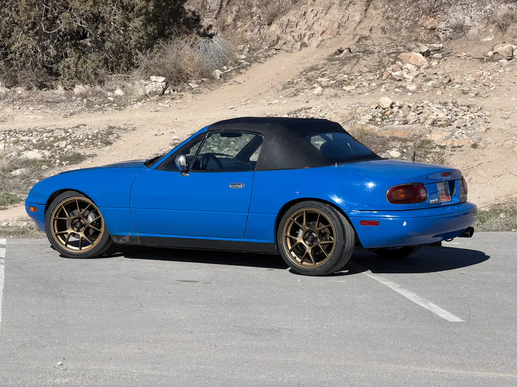 In terms of the wheels themselves, I love the bronze look to them. They are some of the best bronze wheels I have ever seen. I love the design of the wheels too. The bronze looks great with the blue of my Miata. They fit great on my NA (I have lowered it and rolled the fenders and have the vmaxx coil overs, so I don't have any clearance issues)