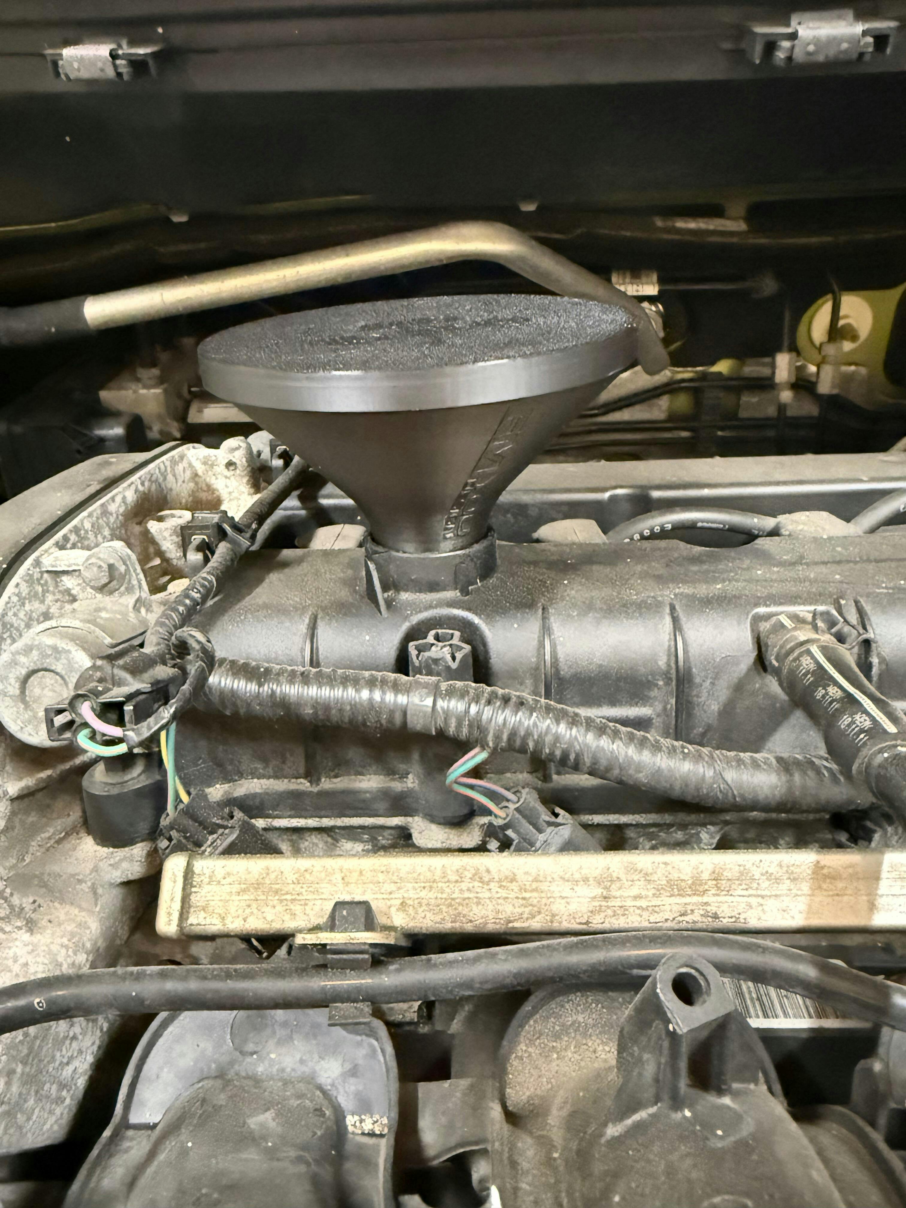 Sure, you could do an oil change with a generic funnel. Heck, you could even do it with no funnel if you're a real daredevil. But why deal with a slow funnel that you have to hold in place or risk a mess when this funnel is an option? Our funnel threads in place of the oil cap, so it holds itself up. It also has the biggest bore possible, so it's impossible to dump oil (from a normal bottle!) in too fast. It also addresses an annoying drawback with funnels - their tendency to drip oil long-term. This funnel includes a base, so the funnel sits upright while it's being stored, with the base capturing the oil that drips down over time. Last but not least, this is 3D-printed in-house out of carbon fiber-infused material that's unaffected by engine oils (among other things).