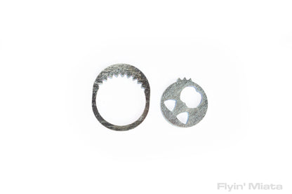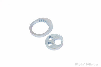 Until now! A few years ago, Paco Motorsports came up with a solution for the NA and NB - and they're now available for the NC! These locks replace the offset washer on an alignment bolt and prevent it from moving. They key into the same ridges used by the stock washer. The center section can be placed in any one of 16 positions, and you keep the same range of alignment - maximum negative camber is still maximum negative camber.
