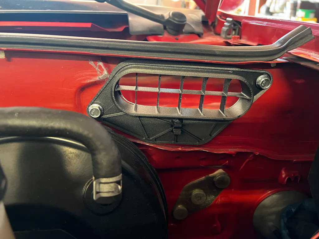 Just installed the Randall Cowl Intake V2 in my '91 NA. The installation was very easy, once I decided to cut the curves at the edge of the opening with a step drill bit. Securing the adapter, then marking the opening with a Sharpie, locating the two center-point punches for the drill bit, and drilling through the firewall was simple. Cut off the extra metal between the two holes with my Dremel tool, then used a grinding wheel to shape and smooth the metal edge to the lines, followed by some emery cloth to finger smooth. Touch up paint from both sides to reseal the raw metal edge. Part of the firewall behind the adapter was not flat, so I stuffed some extra foam pieces to eliminate any possible whistling noise (maybe an overkill - LOL). I did have to buy a larger hose clamp because the OEM clamp was just too tight. Very easy mod feeding the engine outside cold air. I did notice the louder noise on full acceleration that others had mentioned. Getting a bit more HP with the 1.6 would be good, too. Nice product, FM. Thank you!! ;)
