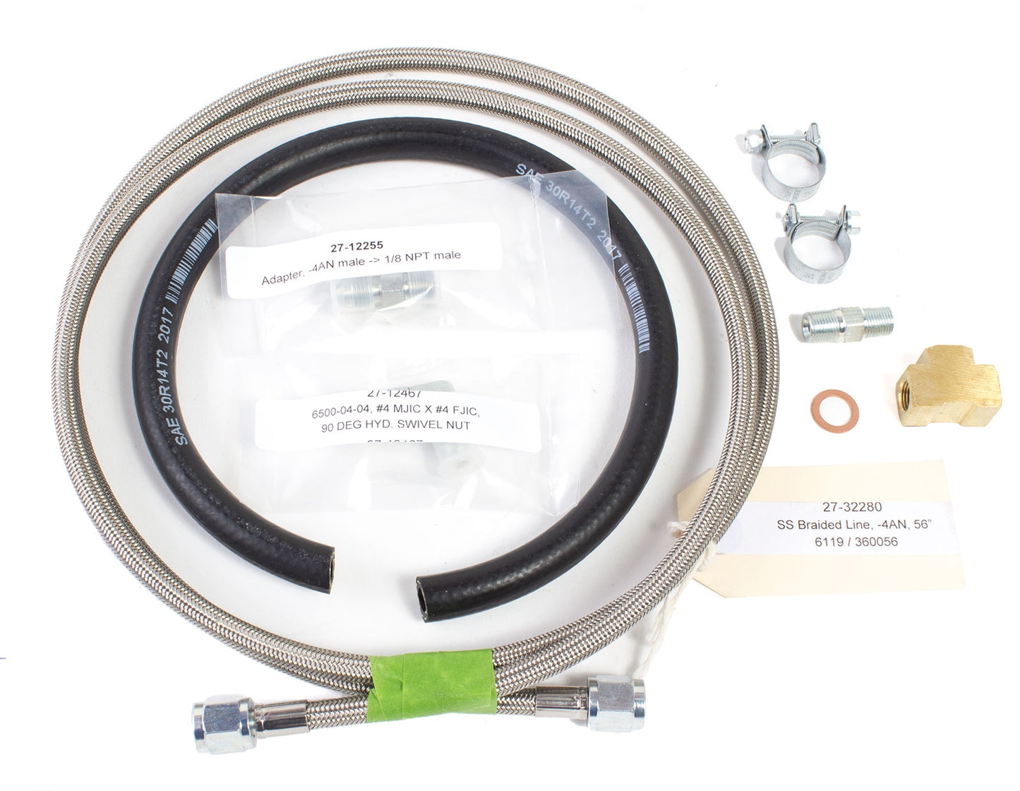 As used in our turbo kits. This gives you a pressurized oil feed for your turbo while retaining the oil pressure sensor. Fit 1996-05 blocks except for Mazdaspeed. Earlier blocks and MSMs should use our 1990-95 kit, although they can use this one as well. -4 AN line with no restrictor. Note that this is intended for FM kits - while it will likely work on other kits please don't assume without checking the lengths.